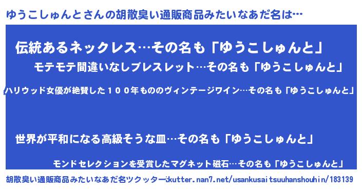 | 意味不明あだ名 | 『住所不定無職ゆうこしゅんと(10歳)』 |