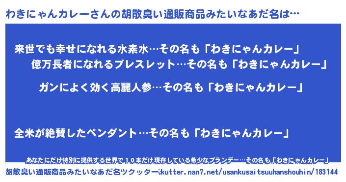 | 伝説のあだ名 | 『聞きしに勝る吟遊詩人わきにゃんカレー』 |