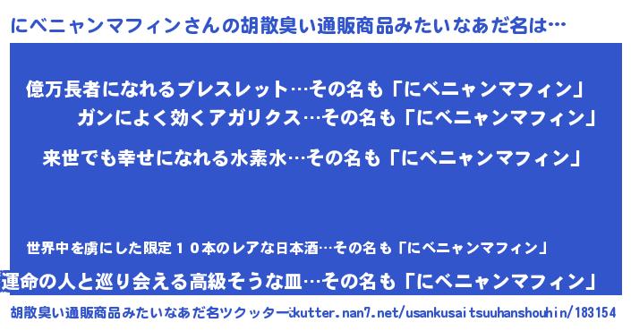 にべニャンマフィンさんの胡散臭い通販商品みたいなあだ名をツクッター!