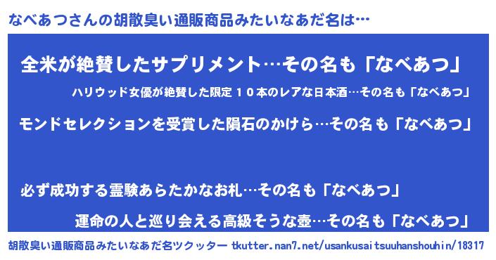 | 意味不明あだ名 | 『眠気覚ましガムなべあつ味』 |