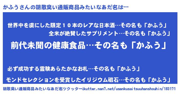 | ヘコむあだ名 | 『かふう(笑)』『かふっぺ』 |