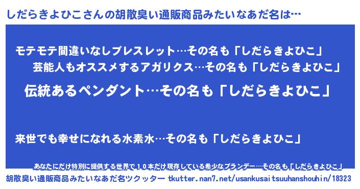 | 意味不明あだ名 | 『とにかく怪しいしだらきよひこ』 |