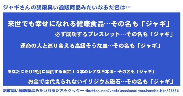 | 意味不明あだ名 | 『ジャギフォーエバー』『永久保存ジャギ』 |