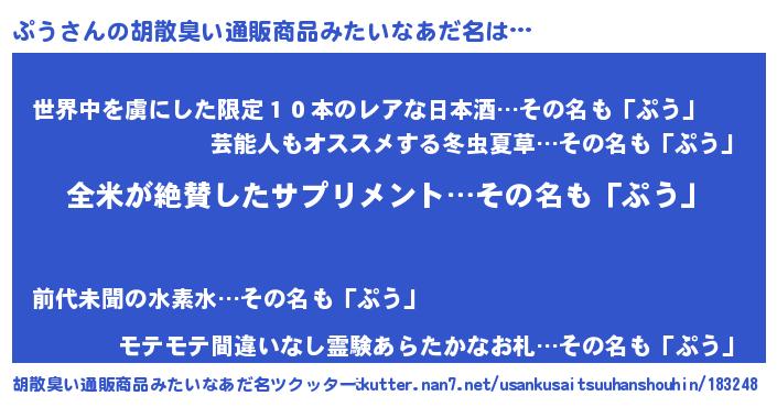 | 意味不明あだ名 | 『とにかく怪しいぷう』『もやし科ぷう属』 |