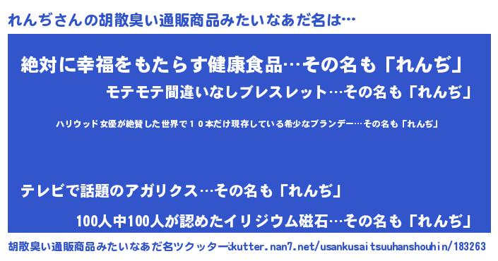 | 意味不明あだ名 | 『住所不定無職れんぢ(95歳)』『自称れんぢ』 |