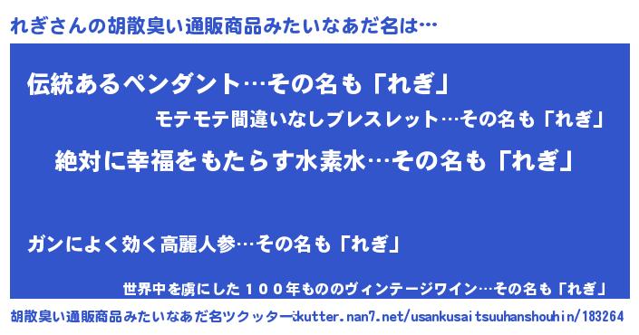 | 男性向けラノベタイトル風あだ名 | 『れぎという概念が存在しない退屈な世界 』 |