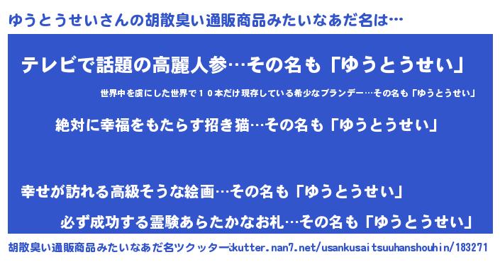 | ヘコむあだ名 | 『ゆうとうせい(笑)』『ゆうふぇ~』 |