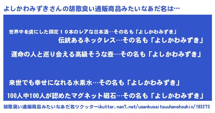 | 伝説のあだ名 | 『最強の忍者よしかわみずき』 |