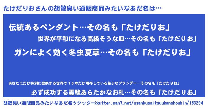 | 男性向けラノベタイトル風あだ名 | 『魔法科高校のたけだりお』 |