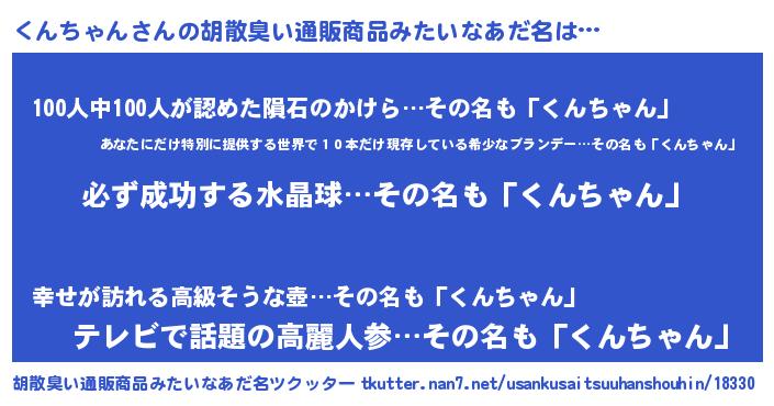| 男性向けラノベタイトル風あだ名 | 『くんちゃんの憂鬱』 |