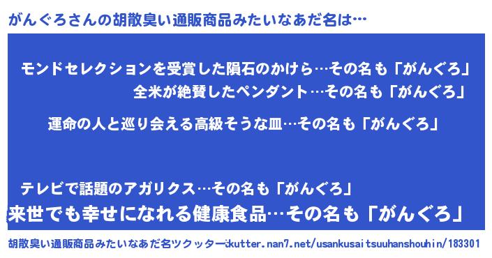 | 意味不明あだ名 | 『がんぐろフォーエバー』 |