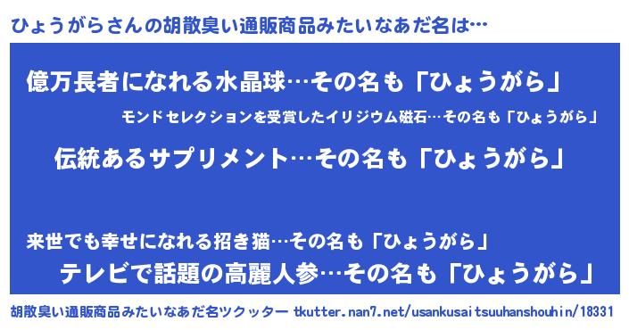 | 意味不明あだ名 | 『とにかく怪しいひょうがら』 |