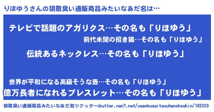 | 男性向けラノベタイトル風あだ名 | 『りほゆうに滅ぼされるだけの簡単なお仕事です』 |