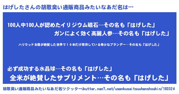| 欧米人風あだ名 | 『ダレノガレはげした』 |