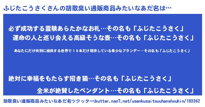 | 意味不明あだ名 | 『住所不定無職ふじたこうさく(89歳)』 |