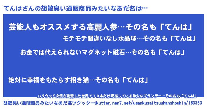 | 意味不明あだ名 | 『眠気覚ましガムてんは味』『自称てんは』 |