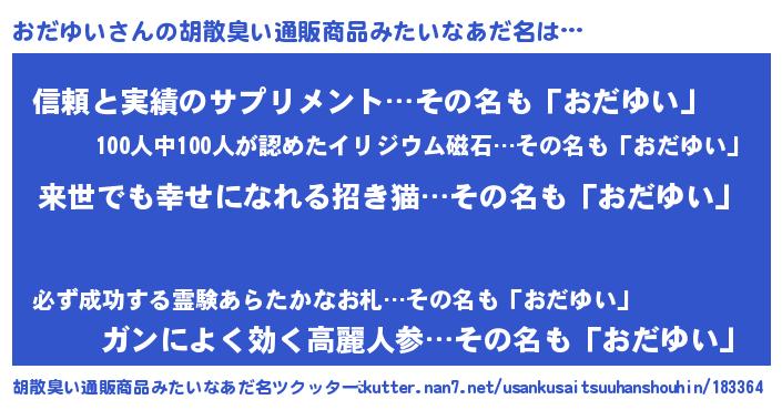 | 意味不明あだ名 | 『永久保存おだゆい』『自称おだゆい』 |