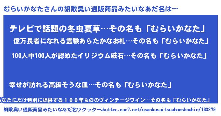 | 肩書あだ名 | 『むらいかなた助手』『むらいかなた総統』 |