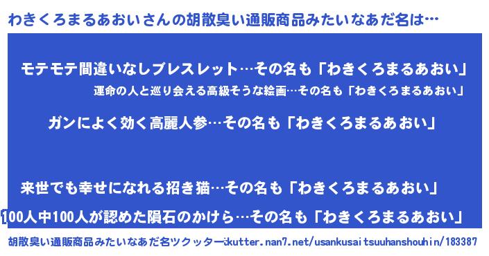 | 意味不明あだ名 | 『自称わきくろまるあおい』 |