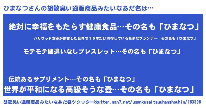 | ヘコむあだ名 | 『ひまふぇ~』『ひまなつ(笑)』 |