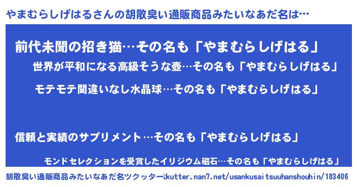 | 男性向けラノベタイトル風あだ名 | 『やまむらしげはるの憂鬱』 |