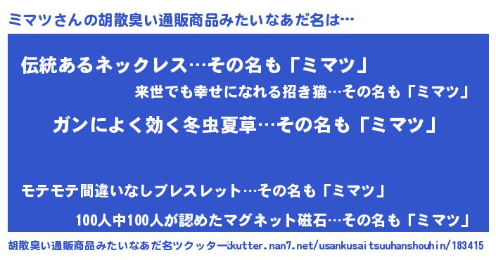 | 意味不明あだ名 | 『自称ミマツ』『とにかく怪しいミマツ』 |