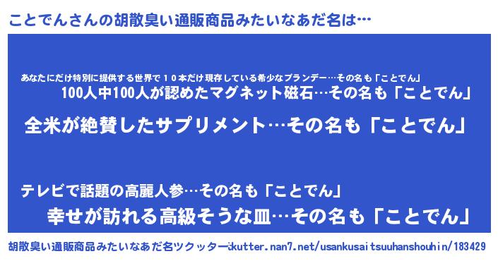 | ヘコむあだ名 | 『ことお』『酢こんぶ』『こともー』 |