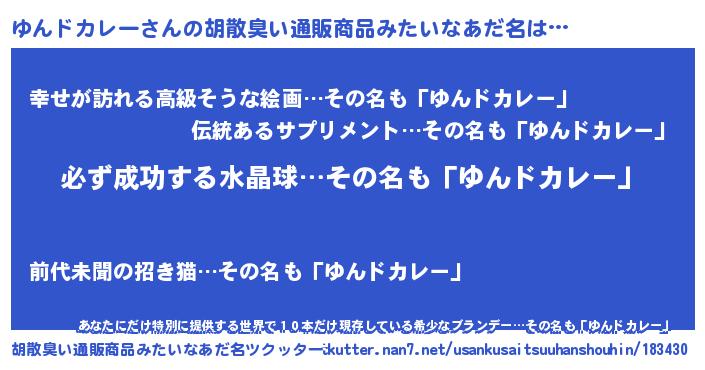 | 男性向けラノベタイトル風あだ名 | 『ユンドカレースレイヤー』 |