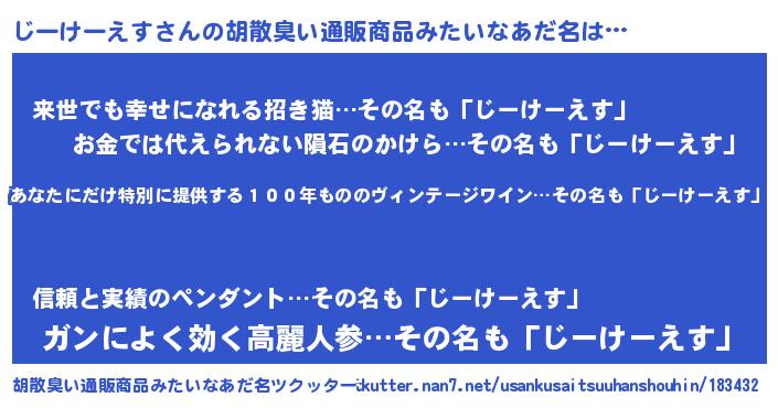 | ヘコむあだ名 | 『じーけーえす(笑)』『じーっちょ』 |