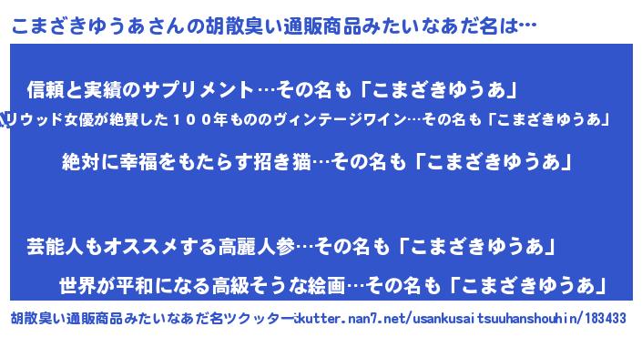 | ヘコむあだ名 | 『こまざきゆうあ(笑)』『こまっぺ』 |