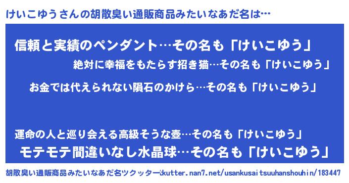 | 欧米人風あだ名 | 『けいこゆう・ステッグマイヤー』 |