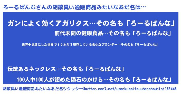 | ヘコむあだ名 | 『ろーるぱんな(遠い目)』『ろーっぺ』 |