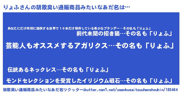 | 意味不明あだ名 | 『自称りょふ』『住所不定無職りょふ(56歳)』 |