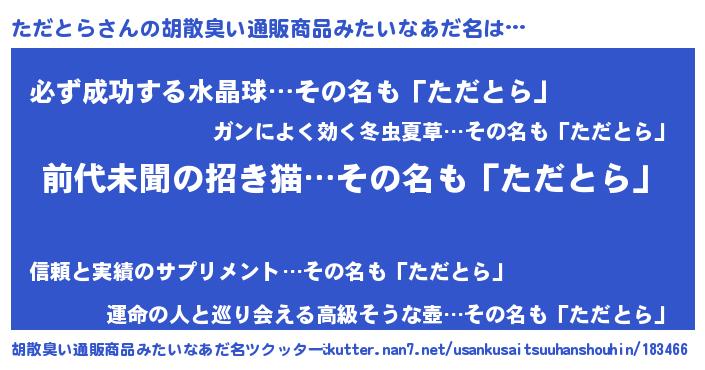 | 欧米人風あだ名 | 『トリンドルただとら』 |