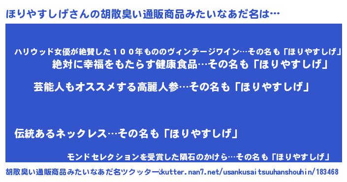 | 意味不明あだ名 | 『自称ほりやすしげ』 |