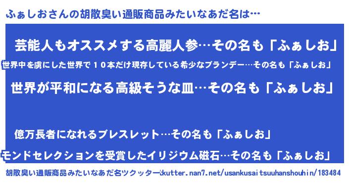 | 意味不明あだ名 | 『ふぁしおフォーエバー』『自称ふぁしお』 |