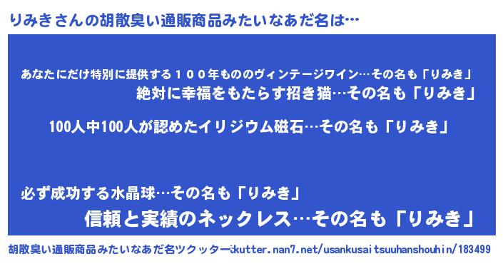 | ヘコむあだ名 | 『りみっ子』『りみき(小並感)』 |