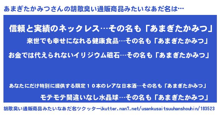 | 欧米人風あだ名 | 『アンジェラ・あまぎたかみつ』 |
