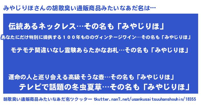 | 意味不明あだ名 | 『ペロリンみやじりほ』『自称みやじりほ』 |