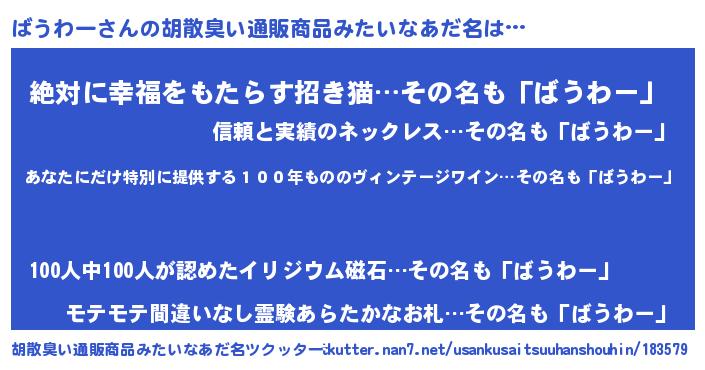 | ヘコむあだ名 | 『ばうわー(小並感)』『ばうふぇ~』 |