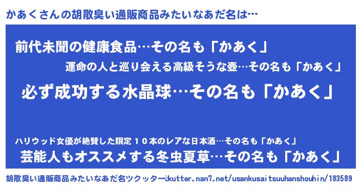 | 欧米人風あだ名 | 『マイケルかあく』『ダルビッシュかあく』 |