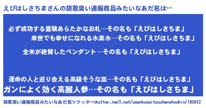 | 意味不明あだ名 | 『とにかく怪しいえぴはしさちま』 |
