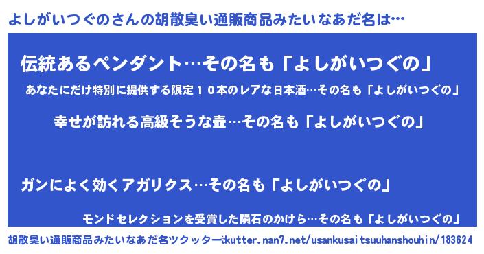 | 意味不明あだ名 | 『よしがいつぐのフォーエバー』 |