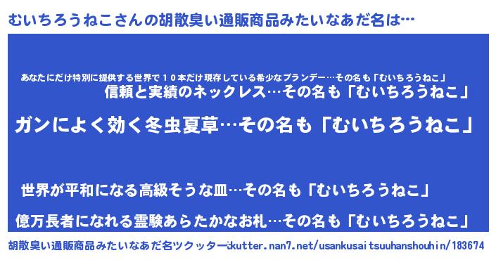 | 意味不明あだ名 | 『自称むいちろうねこ』 |