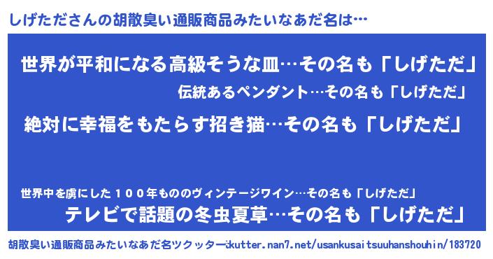 | 意味不明あだ名 | 『永久保存しげただ』『自称しげただ』 |