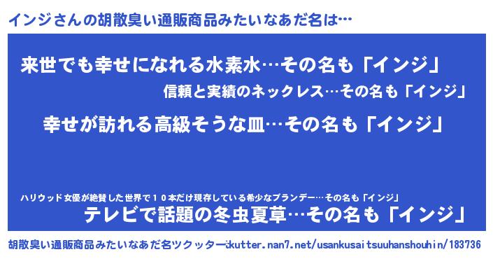 | ヘコむあだ名 | 『牛乳』『インジ(苦笑)』『インにー』 |