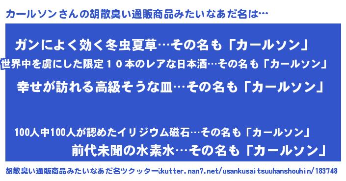 | 男性向けラノベタイトル風あだ名 | 『カールソンスレイヤー』 |