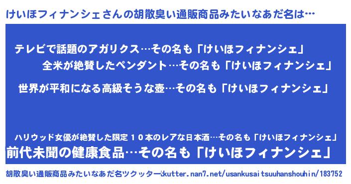 | 欧米人風あだ名 | 『けいほフィナンシェクリステル』 |