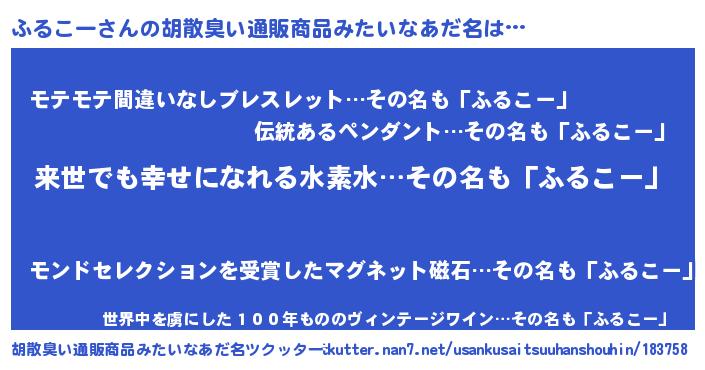 | ヘコむあだ名 | 『ふるこー(遠い目)』『ふるにー』 |