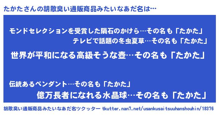 | 意味不明あだ名 | 『たかたフォーエバー』『ペロリンたかた』 |